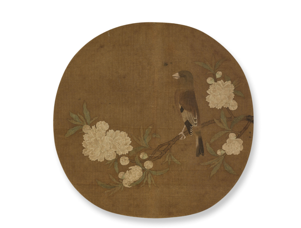 第27名 南宋 白桃小禽 团扇面立轴 设色绢本