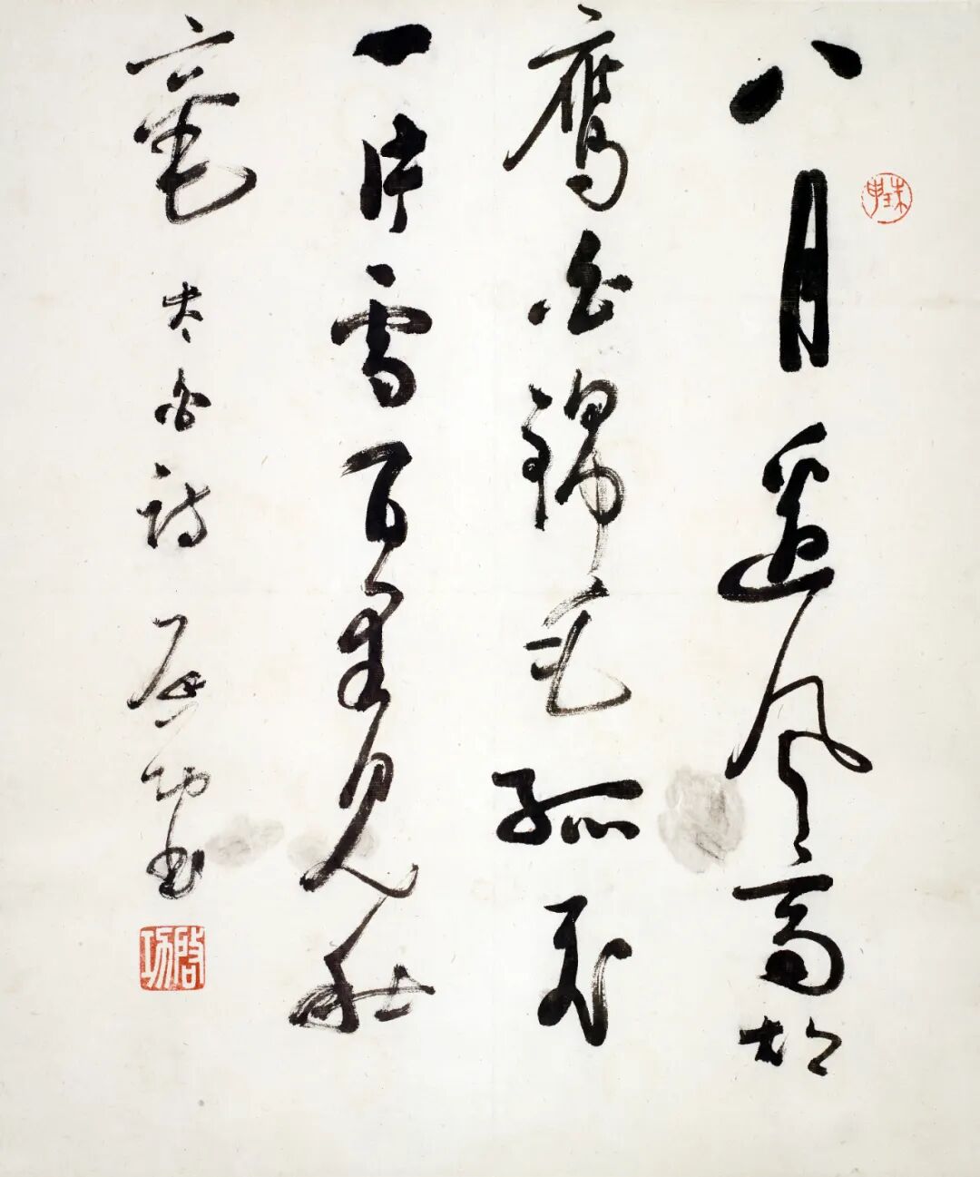 题识:八月边风高,胡鹰白锦毛。孤飞一片雪,百里见秋毫。太白诗,启功书。