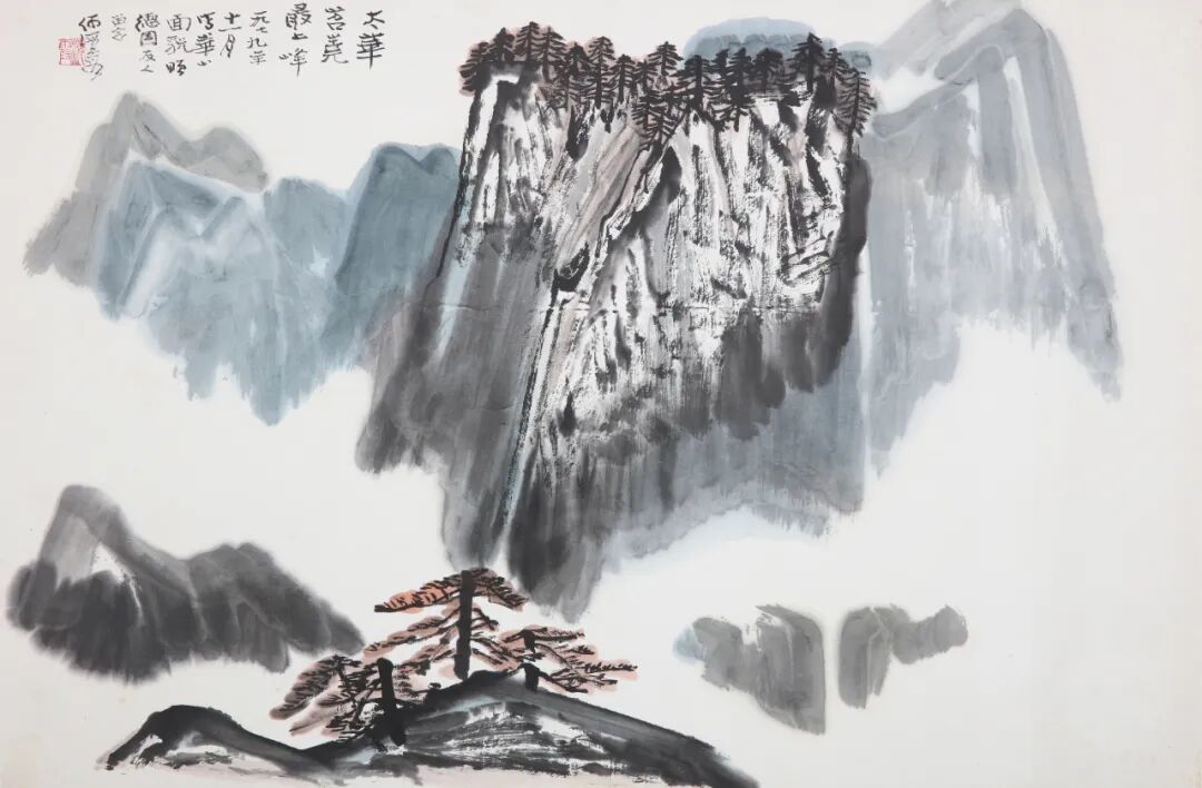 题识:太华岧峣最上峰。一九七九年十一月写华山面貌赠德国友人留念。何海霞。