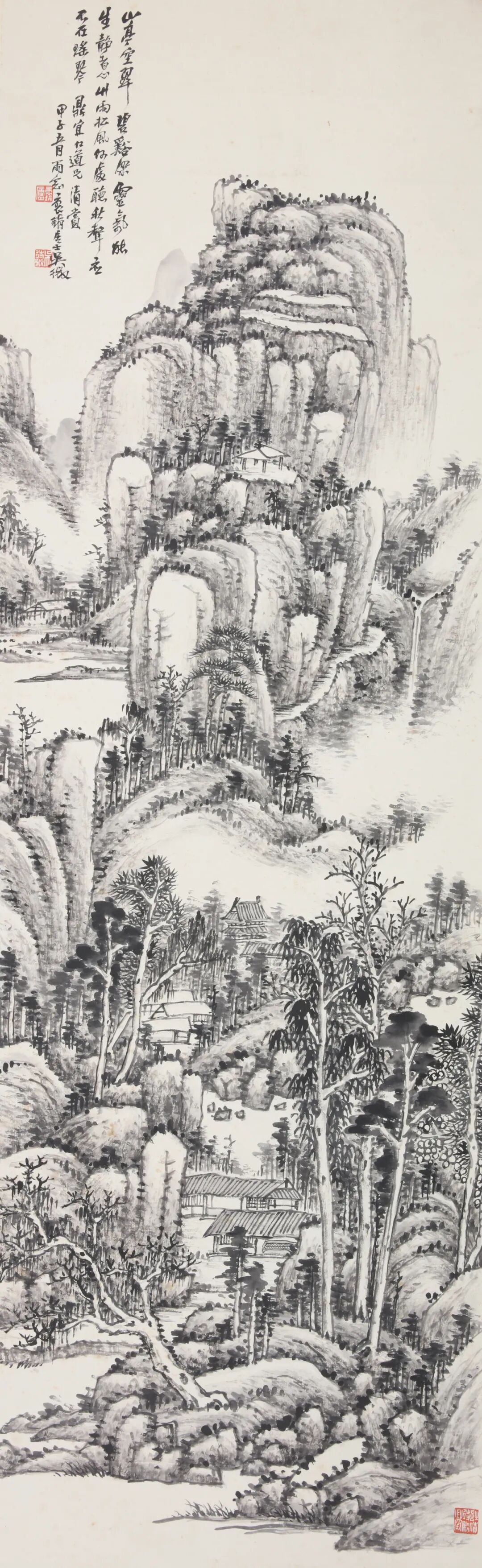 题识:山亭空翠碧溪深,灵气能生静者心。竹雨松风何处听,秋声应不在瑶琴。鼎宜仁道兄清赏,甲子五月雨窗,抱鋗居士吴徵。