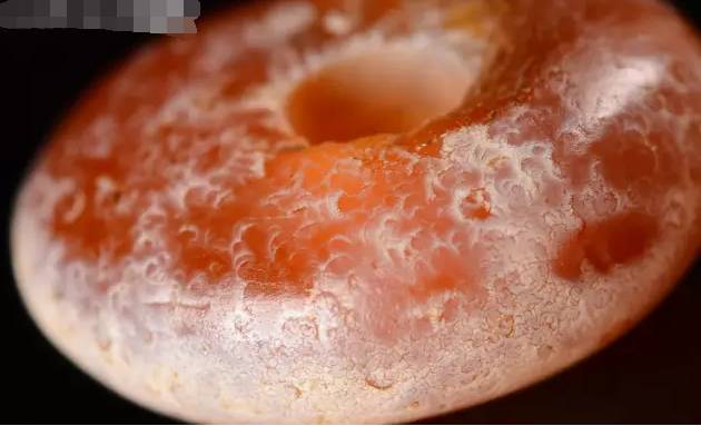 圆板状天珠背面受沁现象的放大图