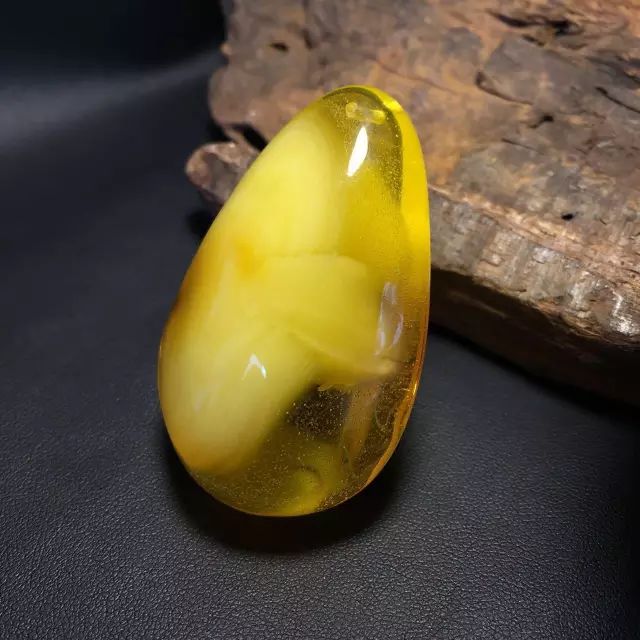 蜜蜡与琥珀交织在一起,互相融合,无法分离,珀中包着蜜,蜜中夹着珀,称之为金绞蜜。