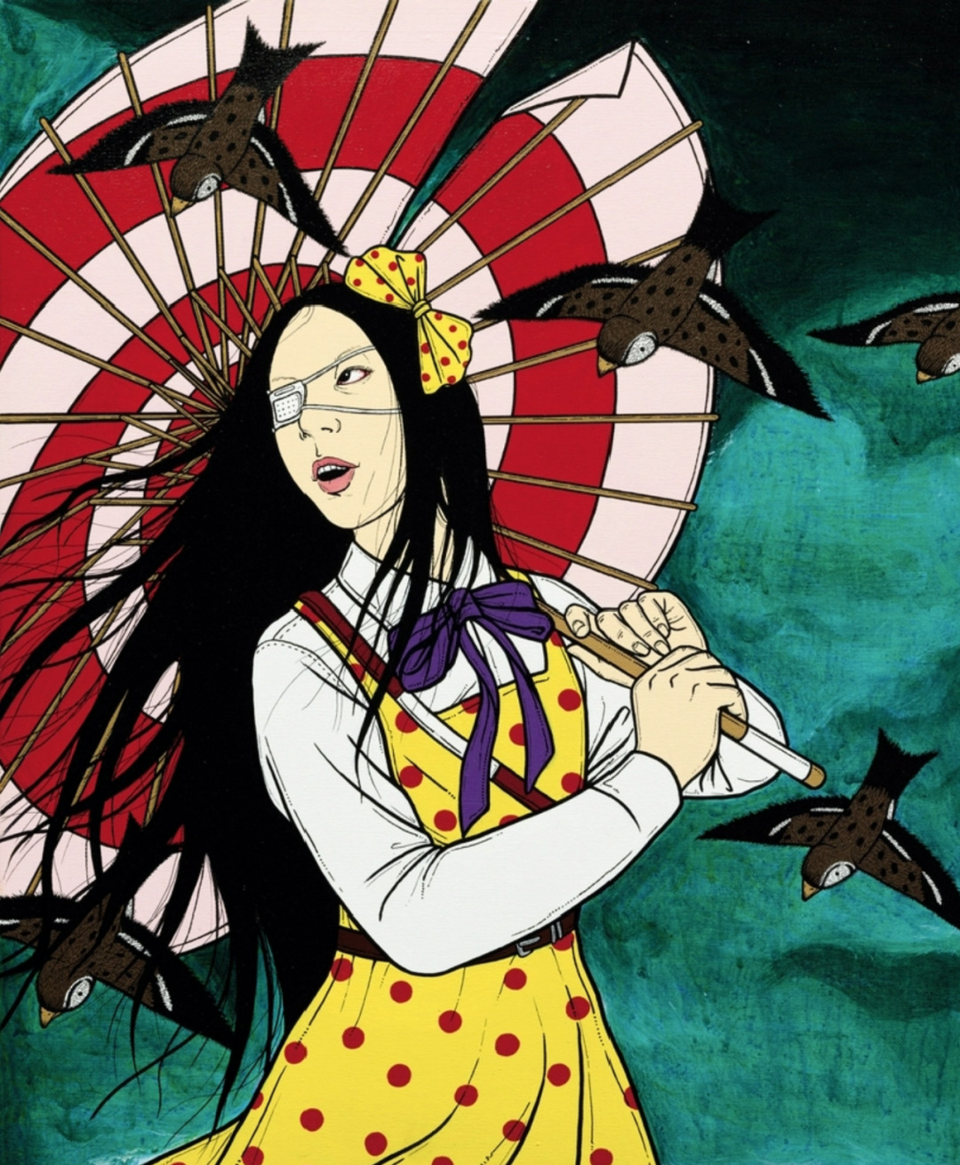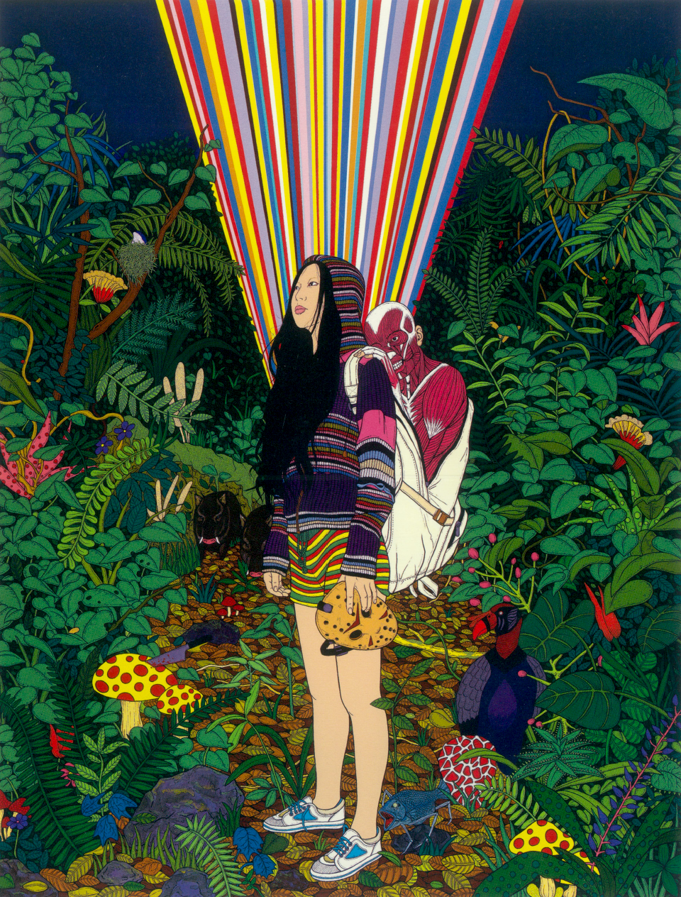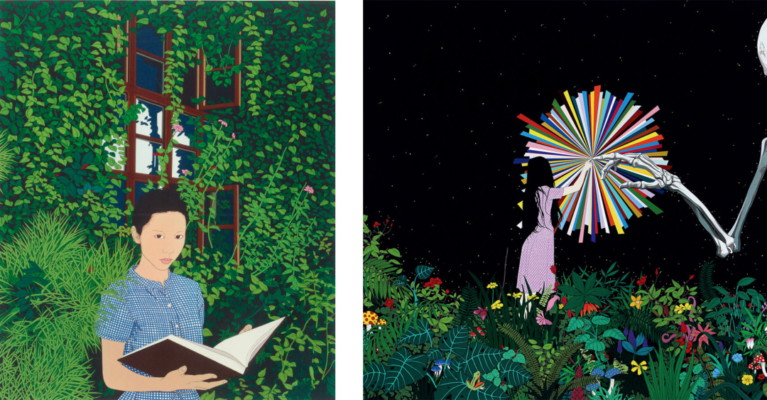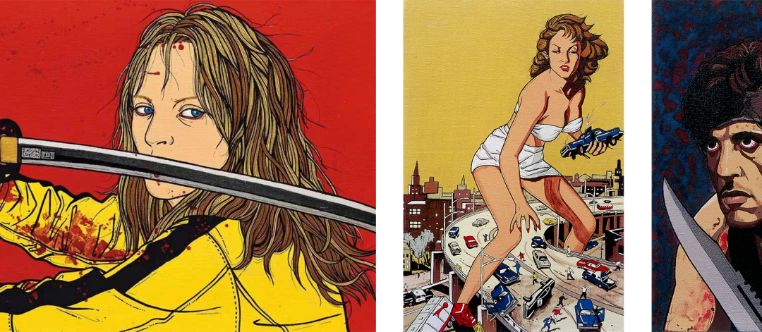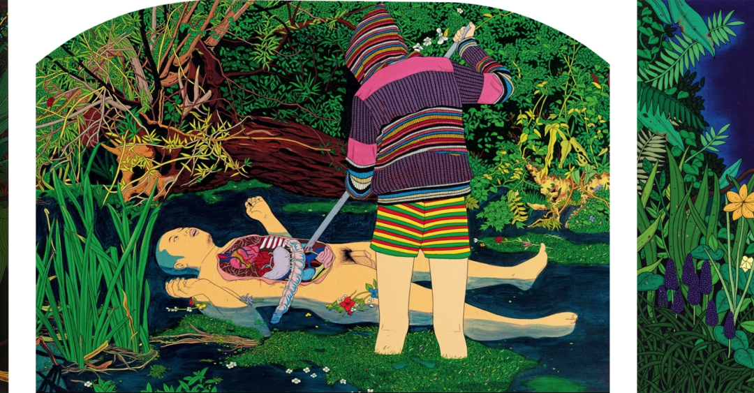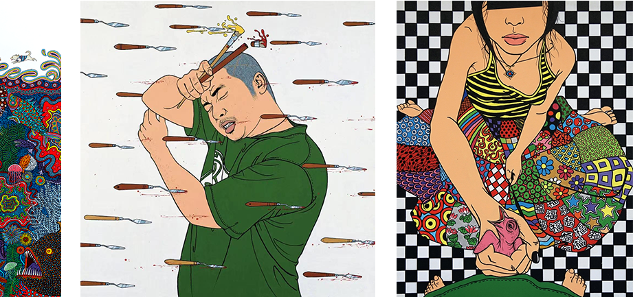 他的创作紧紧围绕着个人生活经验,从周遭生活取材,将本人、模特、女友和宠物等作为画面主角,以诡谲的想象力和独有的诙谐理念探讨着生死、暴力、两性等人生命题,又以细腻的笔触和平面化的手法营造出异于常态的画面氛围,呈现出一种华丽而繁复的平面装饰风格。