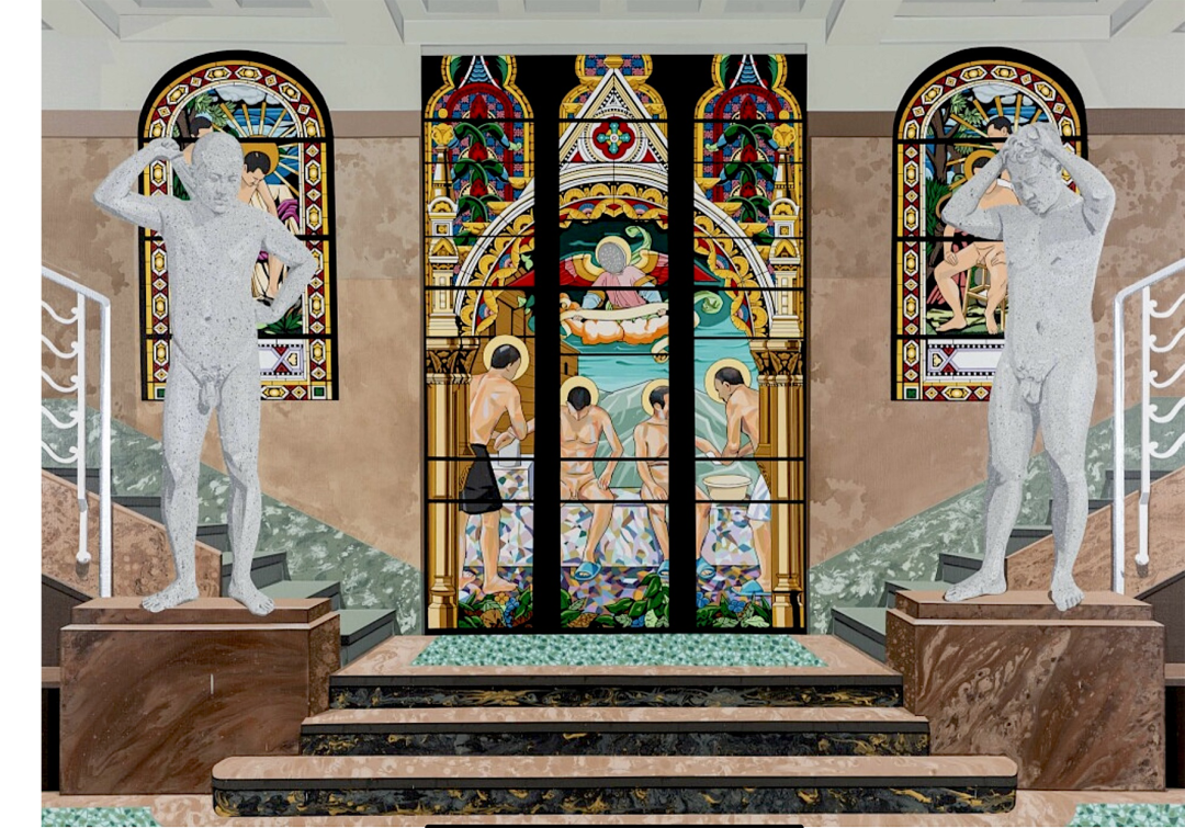 卡通源于将设计从一表面转移到另一表面,这一手法最为人熟知的是米开朗基罗(ichelangelo)在西斯廷教堂的穹顶壁画,今天这转移程序主要用于动画电影,亦是陈飞学生时代的主力。电影本质上是连串静止画面构成的动态陈述,选定一帧静止图像,即是以转喻的手法来突出某一时刻。在“美术”系列创作中,陈飞以中西方普遍认同的(艺术)历史时刻为素材,解读他眼中的当代(艺术)史。