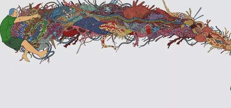 同很多“80后”一样,陈飞从童年开始就接触了大量的欧美与日本流行文化,前者独特的漫画与电影美学对其产生了不可磨灭的影响。在陈飞早期的作品中,艺术家大量运用优雅细致的笔触去刻画各种粗俗的事物与场景,通过这种强烈的对比来挑动观者的情绪与感官,以幽默调侃的卡通式语言表达了对生命与欲望的深刻感受。
