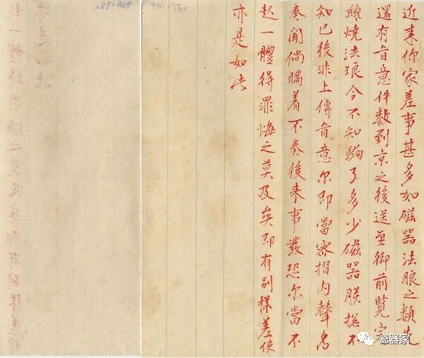 由于台北故宫收藏的清宫旧物,每一件都拥有一个典藏号,透过民国初年的编码规则,得以回溯出民国十四年(1925)以前文物的贮存位置。因为试作品都共同拥有一个“律”字号,故可对照出它们原来收纳于紫禁城的景阳宫。从装饰釉彩与纹样来分类,可再分成两组,第一组胭脂红彩系列,也就是中国的优秀工匠追仿西洋金红彩,以本土技术在釉中加入“金”元素,新创完成的釉彩。另一组则在烧制完成的白瓷碗、盘上,试着以进口彩料装饰人物或花卉纹样。