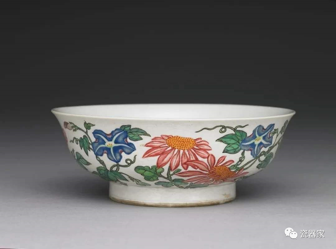 康熙朝的珐琅彩瓷,多半装饰花卉纹样,有些是可以辨识的具象花朵,也有极尽图案化的纹样。值得一提的是,一类穿插在具象花丛中,偶而也和粉色品种一起出现的蓝色菊花,虽然不是主题花纹,却是康熙御制珐琅彩瓷经常可见的小标记。若将这个现象对照康熙四十四年(1705)皇帝题记蒋廷锡(1669-1732)《野菊》轴中,以“山花野菊喜清风,塞北烟光报岭枫”来歌诵出巡塞外认识的小菊花,而能捕捉到皇帝将旅途记忆转换成御制风格的有趣轶事。