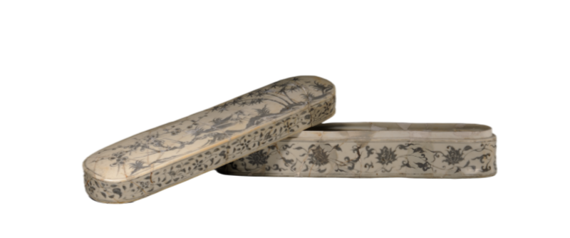此类长条形瓷质笔盒的原型是伊斯兰地区的金属笔盒。
