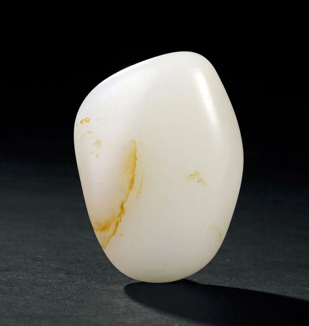 产于新疆和田玉龙喀什河,天然籽料,顶级羊脂,料子老熟,肉质细腻精良。拍品酷似“鲲”,周身遍布无数条洒金“鱼”,足之见“鲲”之大。鲲是中国古代传说中的神兽,体型巨大,可化为鹏,是力量与志向的化身。
