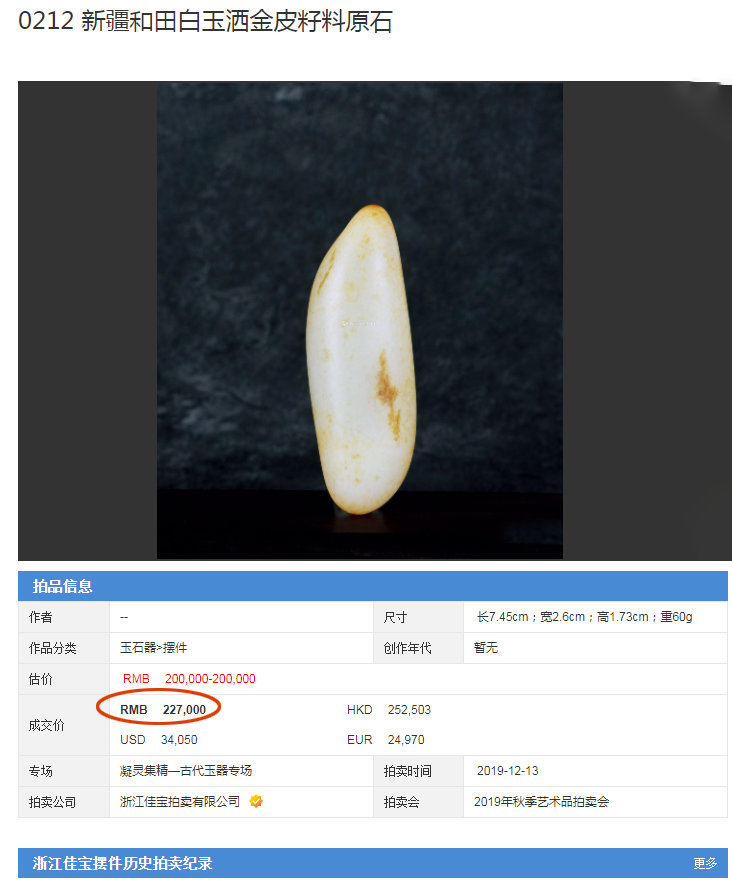 下面两件同样是在2019年春拍上,有亮眼成绩的洒金皮籽料原石。