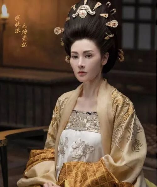 △殷桃饰演的杨贵妃,发饰上点缀着花钿