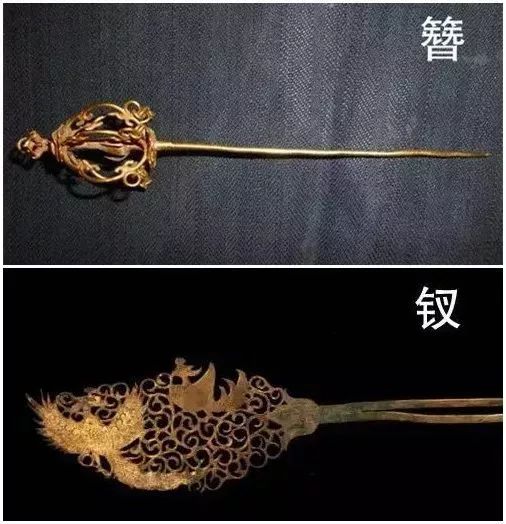 簪子也叫“骚头”,为一股,用于固定发髻,男女皆可用,男子多用来固定发冠,唐代簪子流行白玉、金、银、铜材质,簪首的装饰纹样丰富多样。