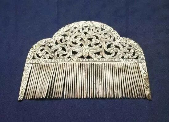 梳栉除了用玉制作,也经常用金、银制成,并雕刻有精致的图案,在唐代仕女图中,经常可以看见女子发髻上插着玉梳背头饰。