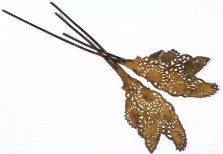 唐代的花钗,一般为一式两件,构图相同,图案相反,通常成对使用,左右对称地横插、斜插或倒戴在发髻两旁。