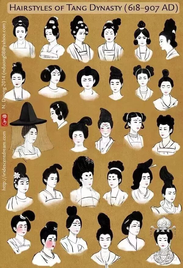 唐朝以梳高髻为美,女子对发型的偏爱和重视可以说是达到了登峰造极的程度,各种发髻明目繁多,有云髻、丫髻、螺髻、双垂髻、乌蛮髻、三角髻、峨髻等近百种。