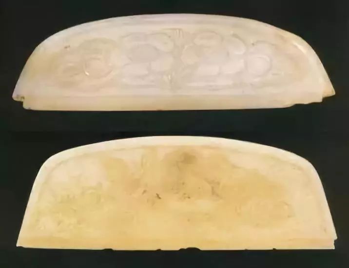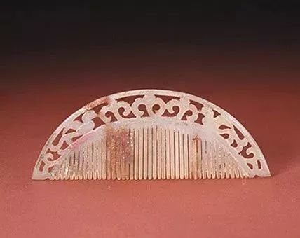唐代梳栉是由梳齿与梳背两个部分组成的,梳背大多数造型相似,上部呈半月形,下部宽平无梳齿,为扁平且薄的榫,梳齿可以通过榫卯连接的办法,安装在不同纹饰的玉梳背上,以达到不重样的装饰效果。