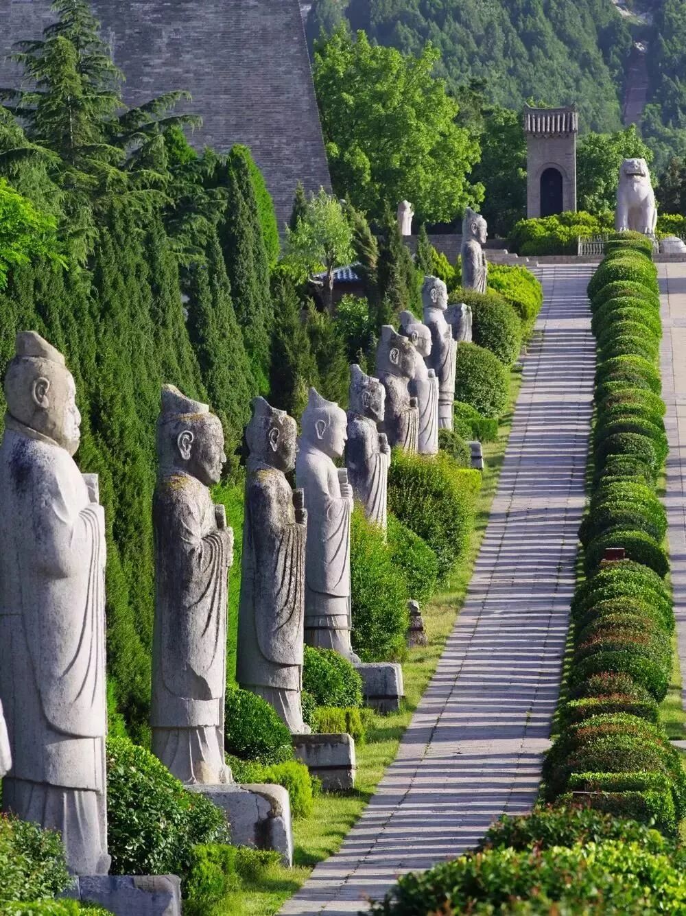 △乾陵是目前已知保存最完整、文物储藏最丰富、而且没有被盗的帝王陵墓,被称为"世界第九大奇迹"