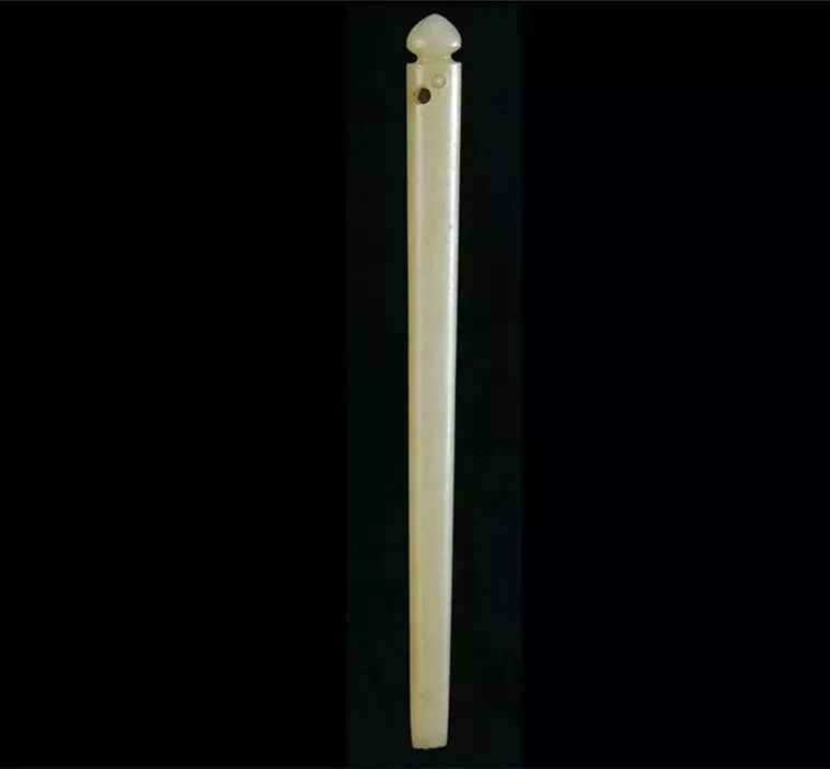 △唐代白玉簪,首端雕琢成花蕾状,简洁中透出精致