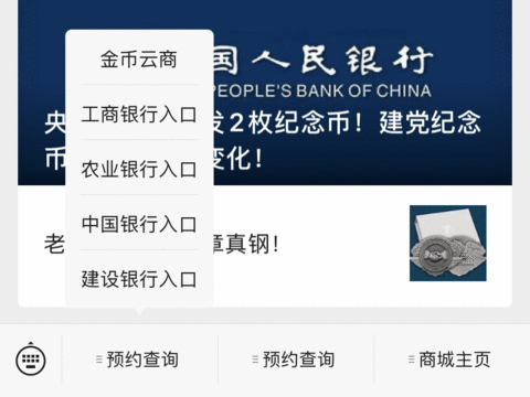 打开链接后,大家可以看到如下的界面,点击『纪念币预约』即可进入: