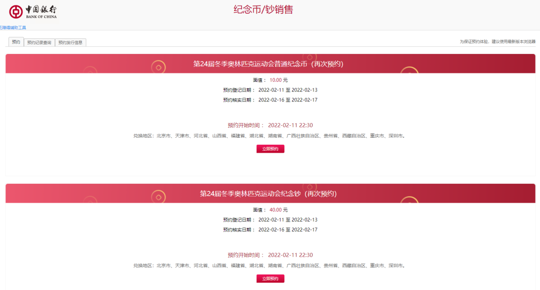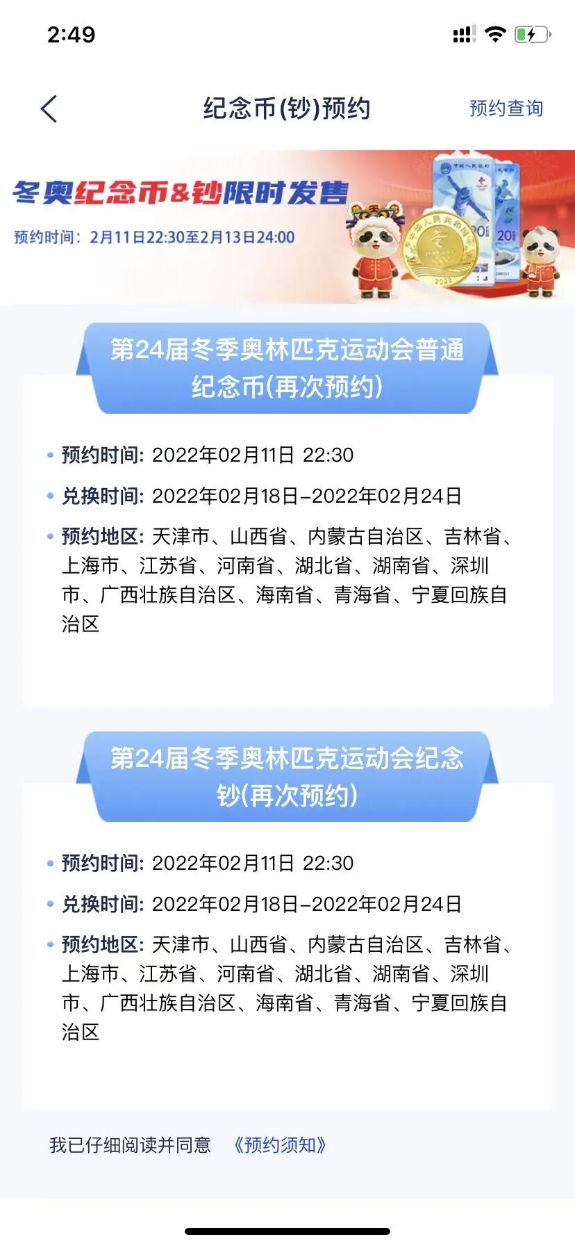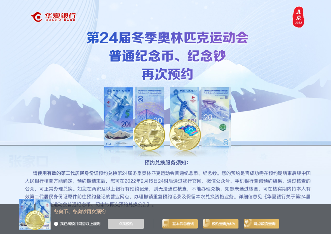 根据中国人民银行,冬奥会纪念币、纪念钞将于2月11日22:30分进行二次预约,具体时间安排如下: