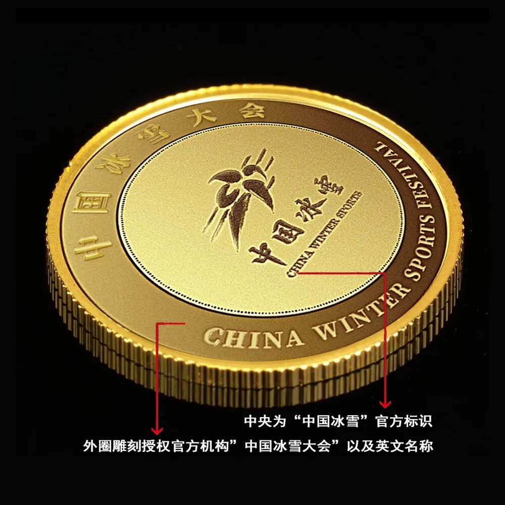 以及彩印“中国冰雪”官方标识、雪花、天坛、水立方、鸟巢、冰丝带等。背面中心雕刻“中国冰雪”官方标识,外圈雕刻授权官方机构”中国冰雪大会”以及英文名称。![]()