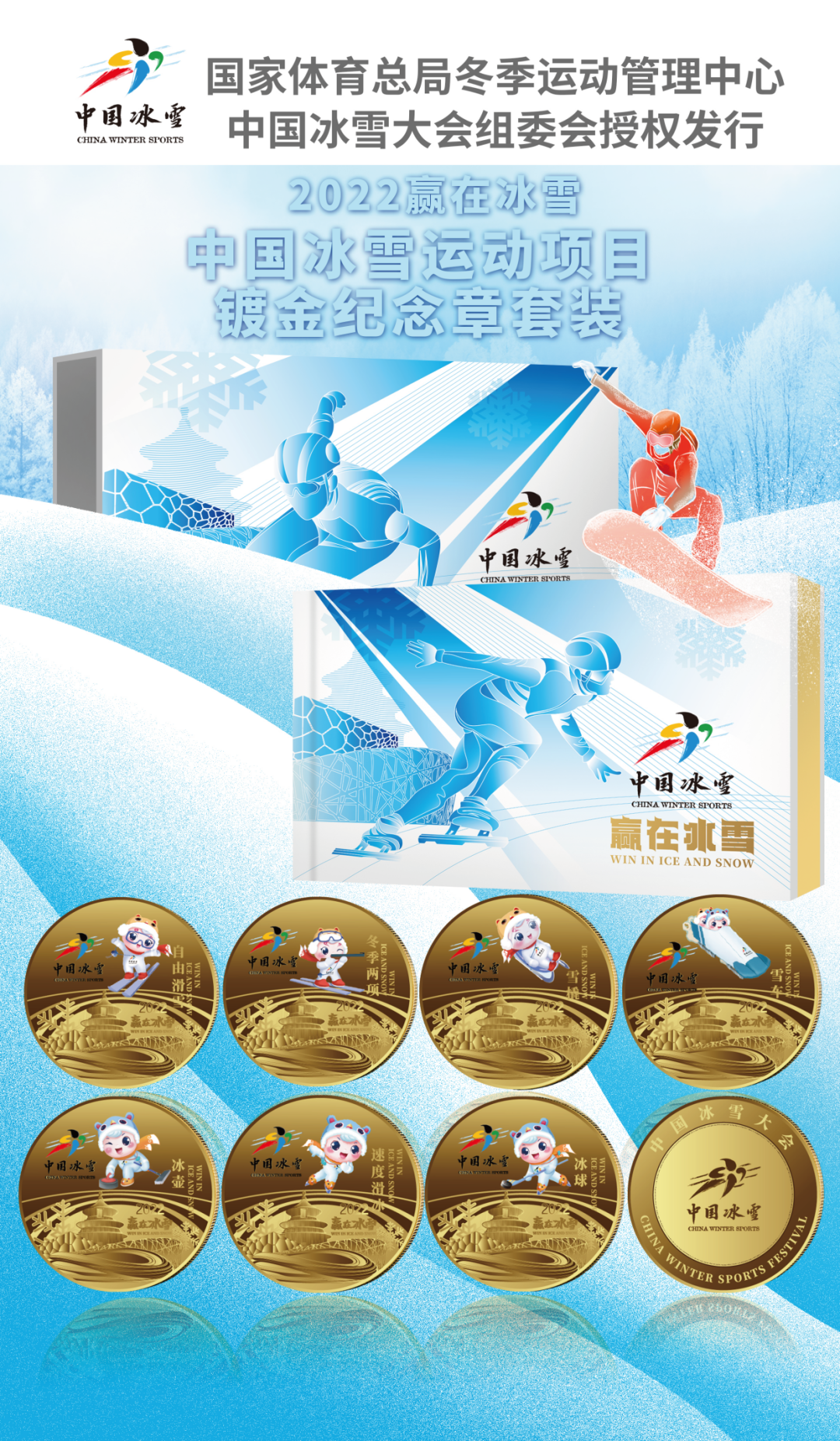 这套纪念章由中国冰雪授权发行,正背双面均镌刻“中国冰雪”官方标识,每套收藏证书上都贴有“中国冰雪大会正品防伪标签”!![]()