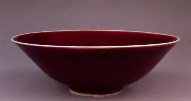 大维德爵士藏康熙郎窑红斗笠碗,带有玻璃质感的浓重鲜红,口沿灯草圈脱口,红釉垂流由上至下越来越多,此碗底提乾隆御诗。