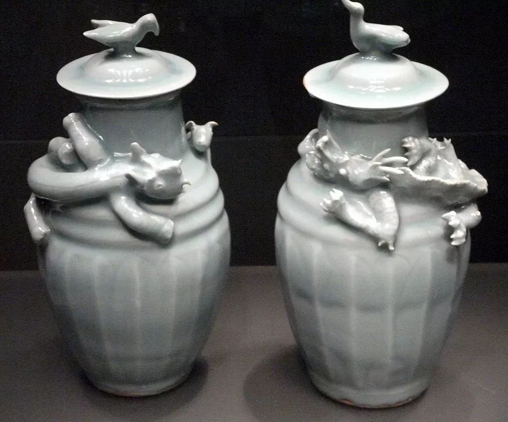龙泉青釉盘龙盖罐 大维德基金会旧藏