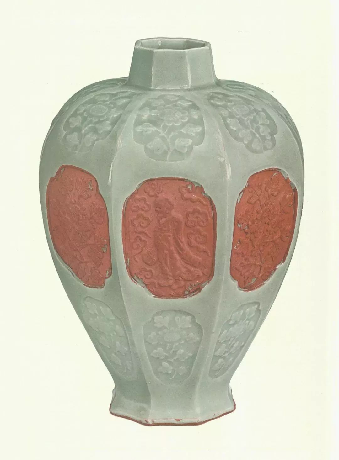 龙泉青釉开光人物纹六棱尊 大维德基金会旧藏