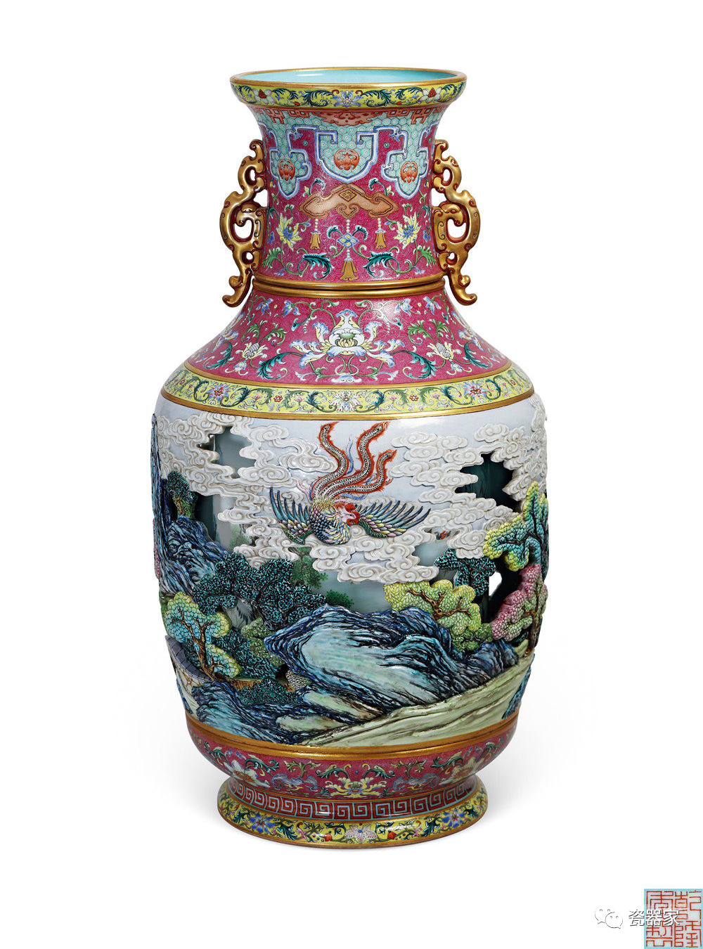 北京保利 2021 春季拍卖会 禹贡Ⅱ—乾隆御制洋彩雕瓷有凤来仪大转心瓶![]()