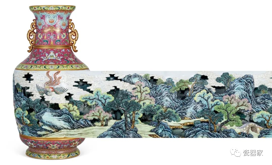 乾隆御制洋彩胭脂红地轧道雕瓷镂空