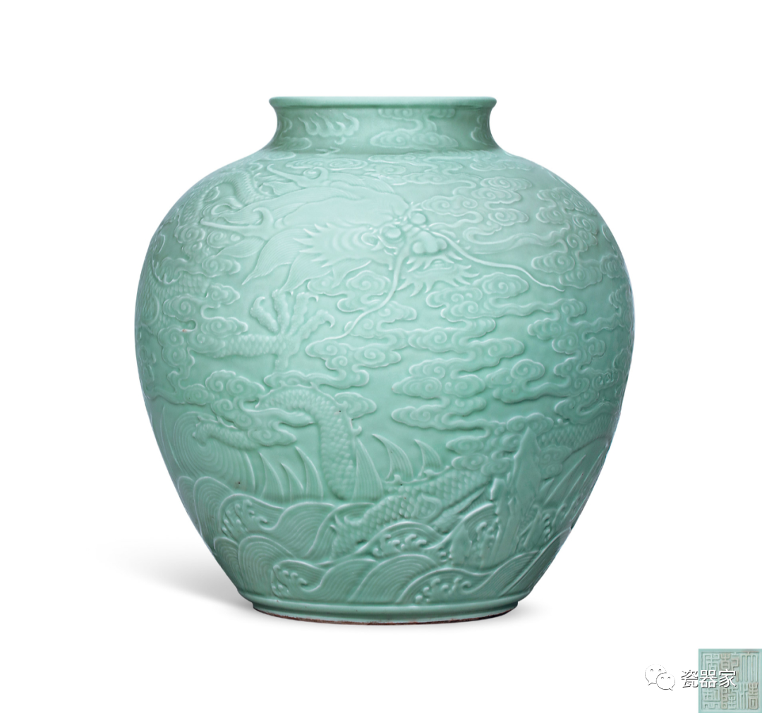 保利香港 2021 秋季拍卖会 盛清皇权:清乾隆粉青釉浮雕「苍龙教子」图大罐成交价:52,800,000 港元(约合 4335 万人民币)![]()