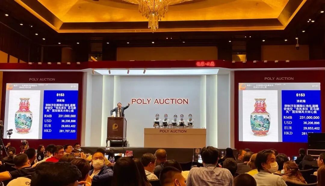 北京保利 2021 春季拍卖会 禹贡Ⅱ—乾隆御制洋彩雕瓷有凤来仪大转心瓶拍卖现场