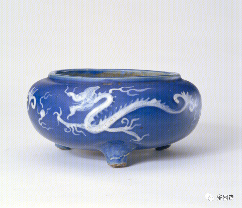 | 明万历 霁蓝釉白花螭龙纹三足炉 |