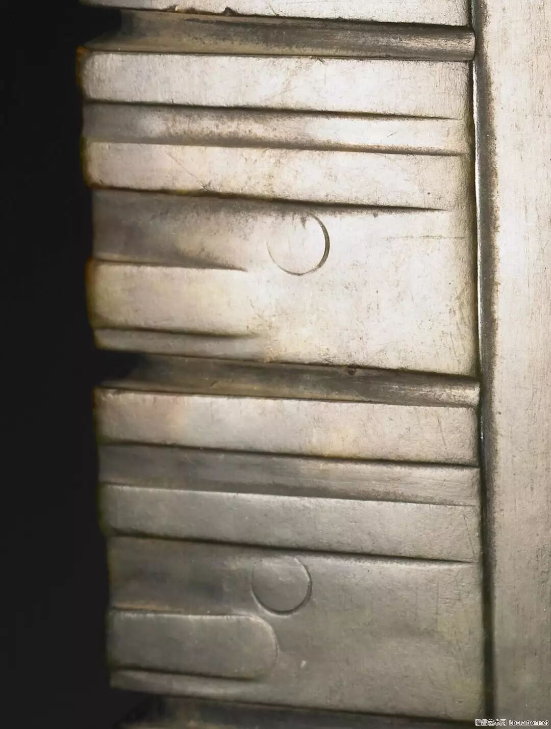 高47.2公分,上端宽7.7-7.8公分,下端宽6.8公分,孔径4.2-4.3公分这件大玉琮,应是在十九世纪入藏清宫的,所以,在它的器表没有乾隆皇帝的题诗,因此保留了它的原貌。(哈哈......特殊之处,正在于此。)