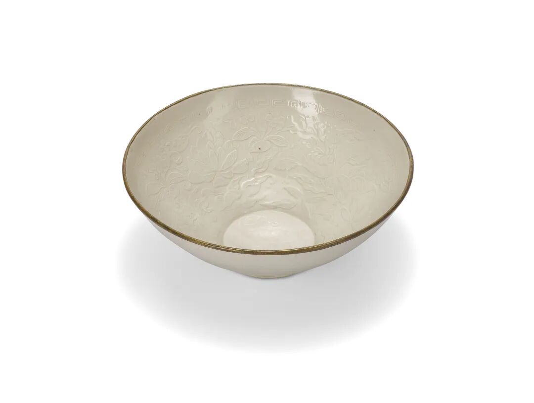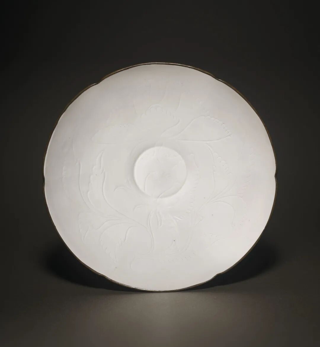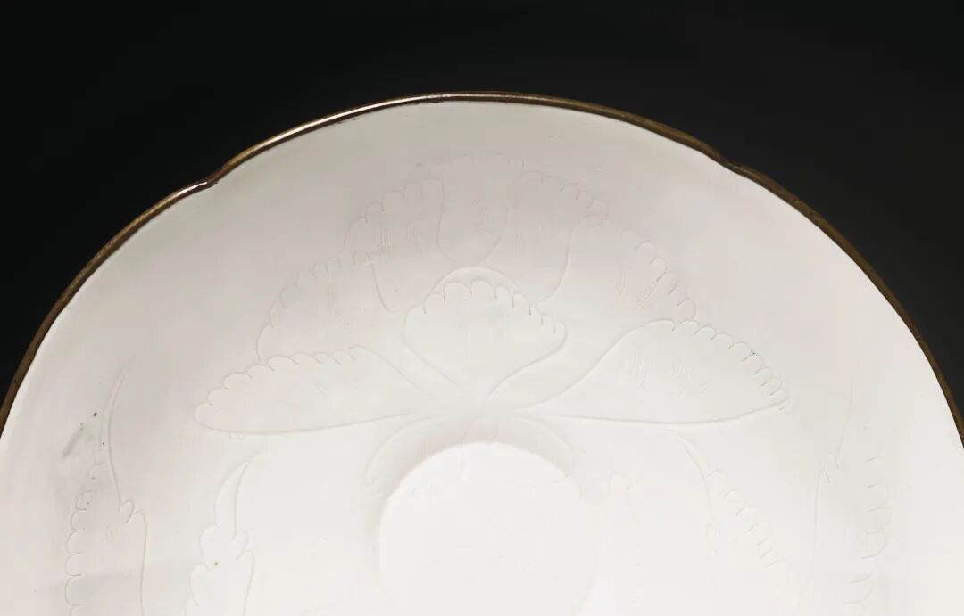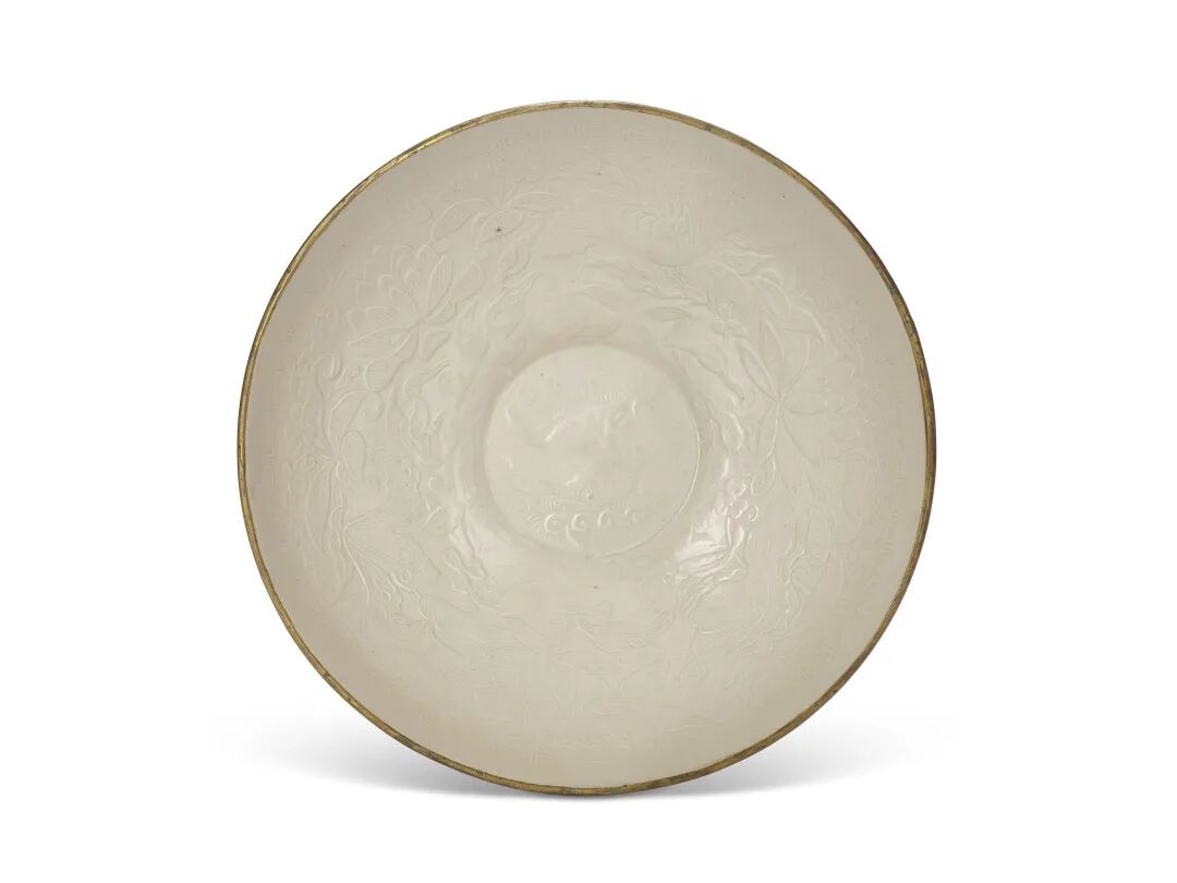 北宋 定窑白釉印花荷塘鱼藻纹盌