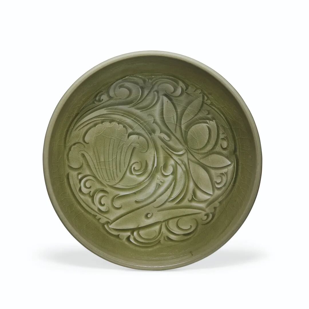 北宋 龙泉青瓷划花鸿雁芦草纹盌