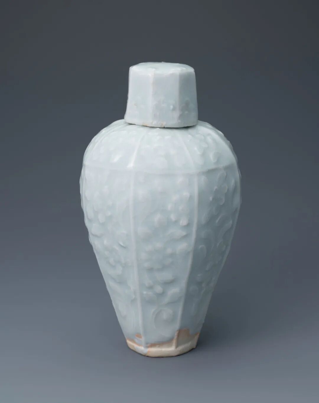 南宋 龙泉窑粉青釉荷叶式小盖罐