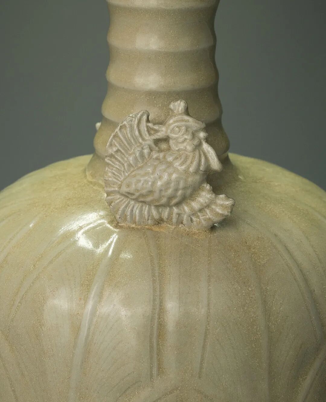 北宋 龙泉青瓷双凤耳弦纹盘口瓶