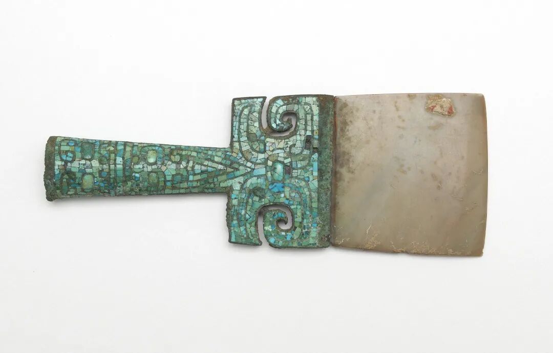 ↑商代晚期,铜内玉钺,弗利尔美术馆藏