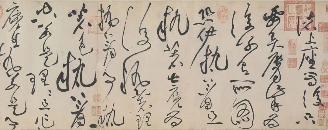 黄庭坚则常用较长的笔头,喜欢双钩悬腕书写,笔意纵横,挥洒自如,似脱缰野马。![]()