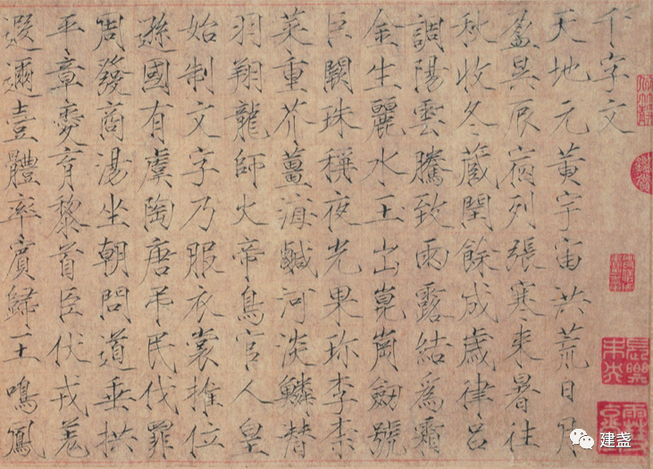 宣笔,起自唐代,繁兴于宋。宣笔盛行之时,一度成为毛笔的代称。其中最有名者,当属诸葛氏所制之笔。据传,宋徽宗赵佶(1082-1135)在23岁,即崇宁三年(1104)完成的这幅《楷书千字文卷》,是用狼毫笔写成。![]()