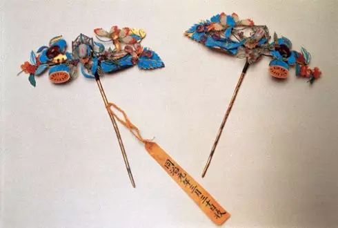 慈禧夏天最喜欢戴的扁方是六十整寿时张之洞进贡的,用檀香木、金丝和小珠子镶成。头花是“大拉翅”发髻的主要首饰,大多以珠宝镶嵌而成。慈禧许多画像、照片中,都能见到她“大拉翅”发髻正中的大朵珠宝头花。