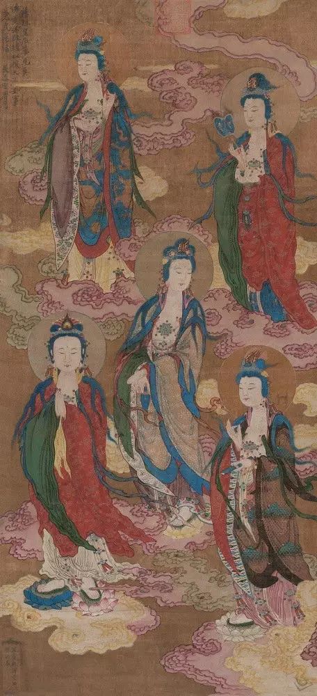 身穿金丝礼服,外罩绣花串珠褂。足蹬朝靴。手执玉莲花一枝,头前方有蚌佛18尊,头顶一翡翠荷叶。