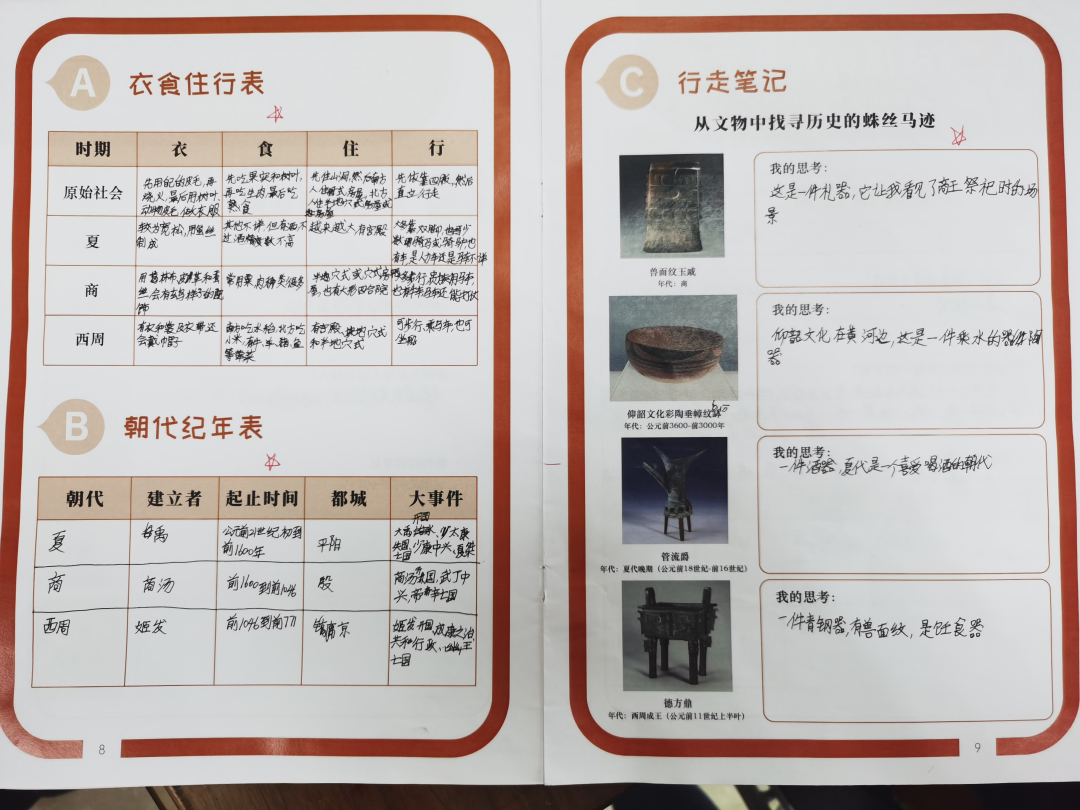 (2)展厅深度探索阅读(60min):走进展厅,聚焦“探索”主题,详细观察文物,挖掘文物承载的历史细节,将课本信息与实物相互印证,还原历史场景,探究“看得见”的中国历史。