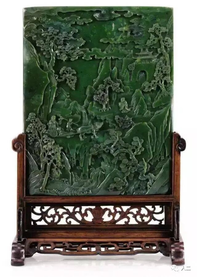 清乾隆 碧玉雕老子出关图插屏