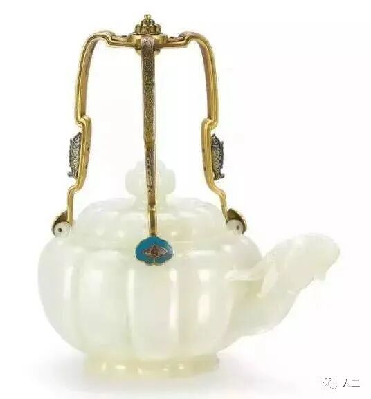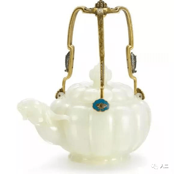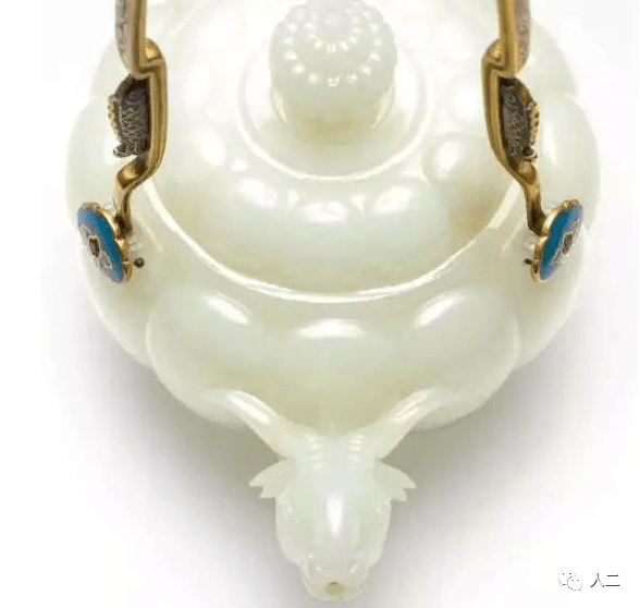 清乾隆 御制白玉瓜棱式羊首掐丝珐瑯提梁茶壶