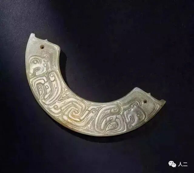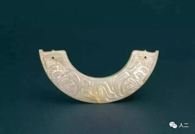 西周 白玉双人面纹璜