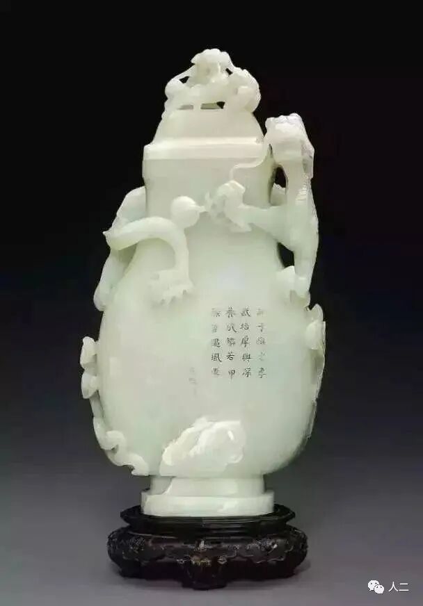 清十八/十九世纪 青白玉雕苍龙教子图盖瓶