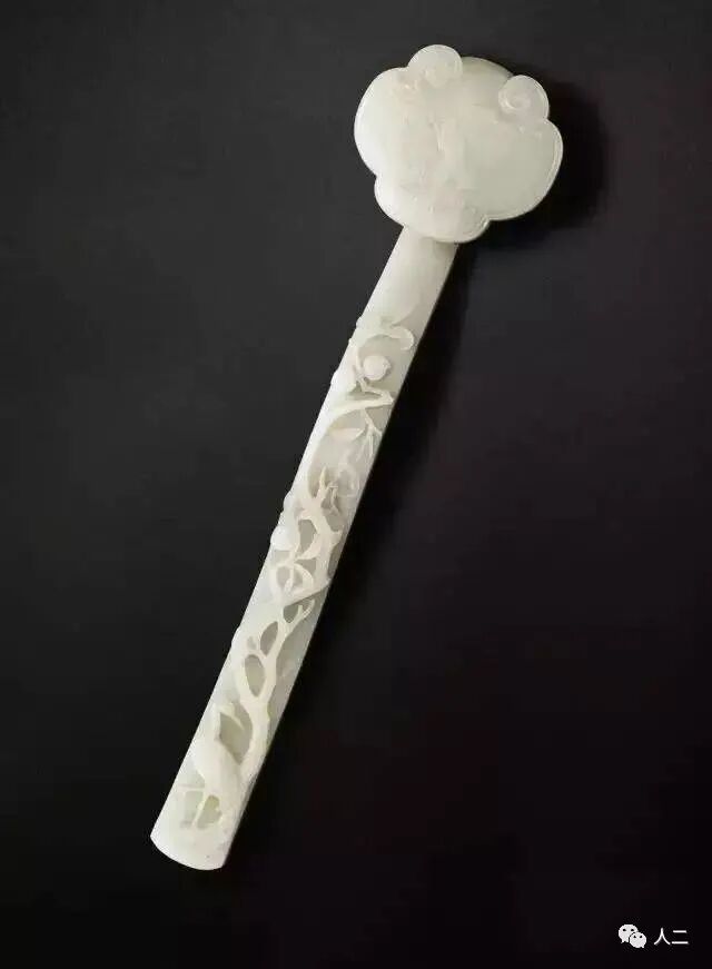 清乾隆 御题和阗白玉桃鹤如意